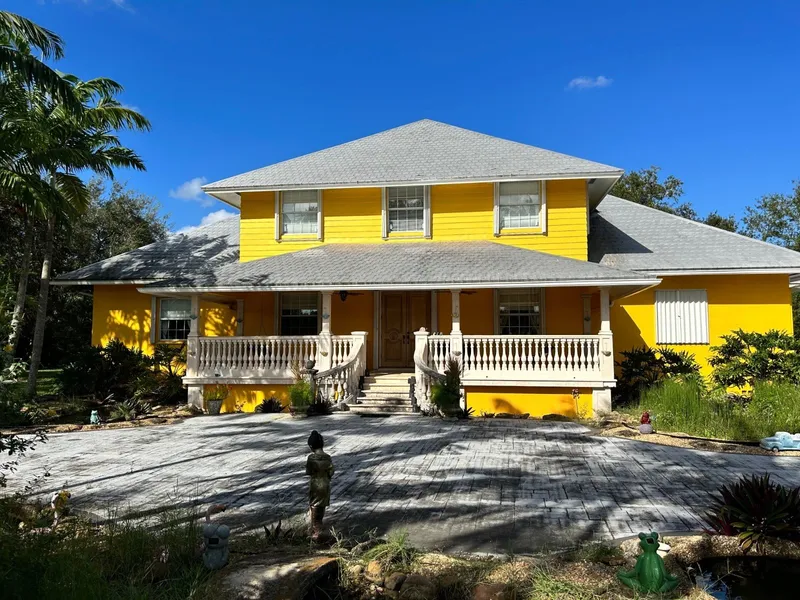 Welcome to a true Redlands oasis. This 4-bedroom 6 bath full concrete block pool home is perfect for entertaining. Come relax on the almost 6 acres filled with fruit trees and a producing lychee grove. There are over 120 lychee trees and 80 coconut trees. 3 separate wells provide irrigation for the grove as well as water for the house. Besides a large custom wall of built in cabinetry The primary bedroom downstairs features his and hers bathrooms and walk in closets. The remaining three bedrooms upstairs are ensuite. The house has been painted and has had 3 new air conditioners installed within the last two years. The house with its over 5000 sq ft of living space will give your family and friends plenty of space to retreat and relax.