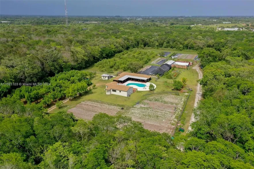 LOCATION! Looking for something unlike any other property in the Redland area? This unique gem is surrounded by state owned land known as Castellow Hammock Preserve. No neighbors, no developers. A secluded oasis on 5 acres w/ 2 dwellings. Front 2.5 acres host the primary 1,381 sq ft 1/1 built 1953 and the guest house 2,133 sq ft 3/2.5 built 2000 w/ attached oversized office (which could be a fourth bedroom). 18'X40' pool that is 9' deep. New: roofs, 3 new A/C units, new hot water heaters, primary completely replumed, new pool pump, fresh paint. Concrete outbuilding for additional storage. Rear 2.5 acres has a private entrance and leased to 2 organic farmers. Ag Exempt with irrigation, nursery hoop house. RV hook-up. Endless potential for this Must See!