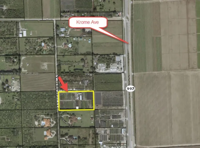This is the 5-acre opportunity (One block to Krome Ave.) is what everyone wants in The Redland. Tucked just one block from Krome Avenue (SR-997)—the area’s main north-south corridor this parcel puts you minutes from shops, dining, and major routes while preserving the quiet, rural feel that makes Redland living special.