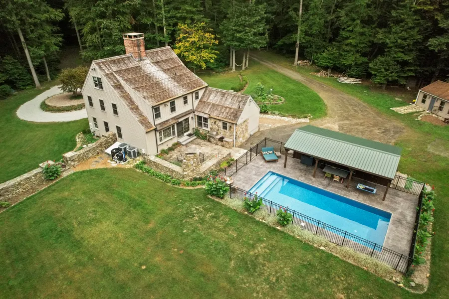 Your absolutely stunning private oasis awaits you with this 27 acre property that is landscaped with stone walls and beautifully manicured gardens. The current owners, and those before, have spared no expense in making this 3 bed/3.5 bath house an incredible place to call home. Those with an artistically inclined eye will delight over the mural that lines the hallway staircase at the front entrance, inspired by the famed New England painter Rufus Porter. Other top notch features include a chef's gourmet kitchen which boasts a Viking 6 burner gas range with griddle/grill and double ovens, Viking microwave and warming drawer, Bosch dishwasher, Subzero fridge, and custom hickory cabinets. Electrical (400 amp) was updated in 2006 as well as new pex plumbing and a 1500 gallon septic tank. There is five zone hydro heating and cooling with a newer Buderus boiler. Within the last year, sellers have also renovated to add a side entry mudroom/laundry area, a 16 x 36 heated in-ground salt water pool, and a custom garage that can easily be converted into a phenomenal pool house.This home has all the seasons covered- whether you're soaking up some rays in the pool, hosting dinner parties on your gorgeous stone patio featuring a fireplace and custom outdoor Wolf grill, or cozying up inside by one of the many fireplaces on a chilly New England night. And to top it all off, there is a well appointed finished basement with its own kitchen and full bathroom. Come see it all for yourself!
