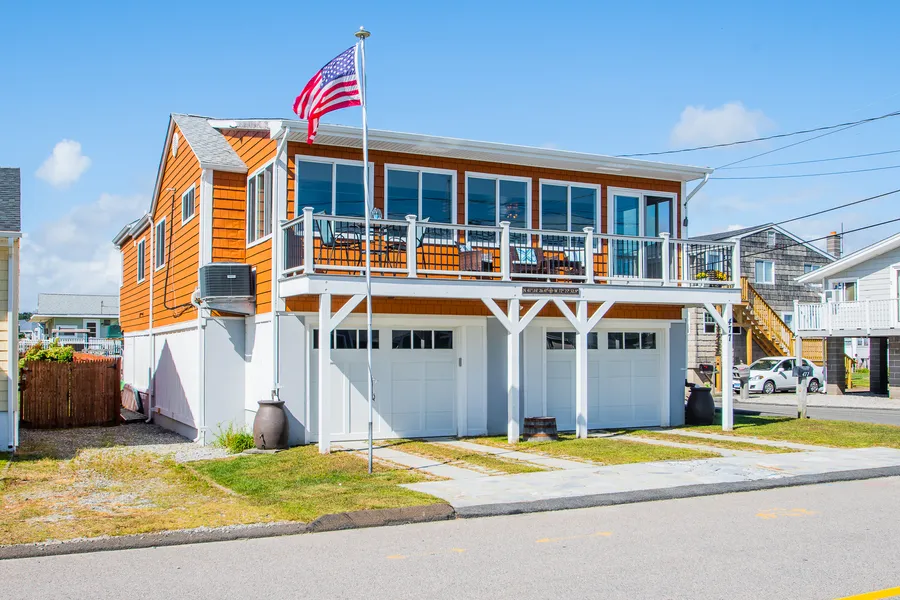 Amazing LI Sound views abound from this open & airy elevated ranch, nicely located just steps from beautiful Coral Sands Beach! Built & elevated to FEMA specs, flood insurance will not be a hinderance at this well appointed 3 bedroom, 3 bath single level home. Envisioned to capture the terrific water views from all interior & exterior living spaces, you'll amaze at the open floor plan & smart CT Shoreline design features. The kitchen, living room & dining room all run smoothly together to capture the essence of beach community living. The kitchen features stainless appliances with gas cooking, Corian counters, white painted cabinets & an island finished with reclaimed wood from the original home. The living room & dining capture the view with banks of glass and a slider that leads to a front balcony that peers to the water & is a wonderful & peaceful sitting area. All aforementioned rooms are open to adorn the views from every space & feature luxury vinyl flooring as well as bead board ceilings outlined by beams. Extended from the mail living area is the main foyer which features rustic cedar shack walls, a full bath, laundry, lower level access & leads to the sleeping quarter. The well appointed master suite offers a large walk-in closet & master bath with California rain shower, quartz topped dual sink vanity & shiplap wall finishes. Other accoutrements include, the lower level with two bay garage, storage & half bath, patio, outdoor shower & new engineered septic system.