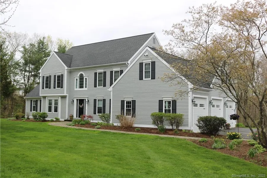 Looking for more space to raise your family? This gorgeous 4 BR, 3 Bath Colonial is ready for a new owner! Enjoy the Country Kitchen with island, granite counters, tile floor, Great Room/LR on main level with floor-to-ceiling stone fireplace, Hardwood Floors, ceiling fan, French doors to private deck. Upper level, Master BR suite with new Bathroom, walk-in closet, Bonus Room, attic storage. Main level 4th BR/Office, Kitchen sliders to private deck, Finished Lower Level Family Room, lots of closets, Great Entertaining Space! All new windows, freshly painted exterior, Oil hydro air heat, 2 oil tanks, 3 Car Garage, New Roof. Private Rear Lot, driveway lighting, spacious shed. Basement is 24' x 16' and 11' x 19'= 593 sq ft. Bonus Room is t-shaped and is 24' x 10' and 18' x 9' = 402 sq ft. Property backs up 40 acres of wooded conservation space for hiking and exploring. One year home warranty...