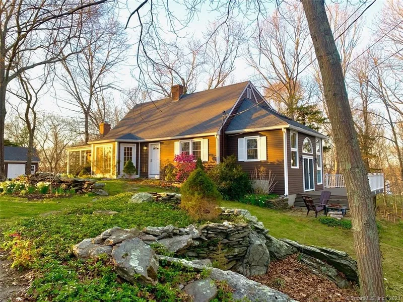 This quintessential New England Cape located in the desirable CT River Valley is the forever home you have been waiting for! Be moved in for Fall Foliage Season to take advantage of this storybook location! A long driveway leads you to over 1 acre of wooded seclusion that offers unmatched serenity and privacy. The multiple oversized decks give you easy access to the outdoors and are ideal for entertaining and/or relaxing. Once inside, you will NOT want to leave. The impressive interior includes a newer & unique sunken addition that brings an enormous amount of sunlight into this home & includes a propane stove to save on heating costs, a roomy upstairs loft area w/interior balcony that overlooks the open layout of the updated first floor, an aesthetically pleasing remodeled gourmet kitchen w/island, soapstone countertops & upgraded appliances, great room, living room w/wood-burning fireplace for those cold New England winters. There is absolutely NOTHING to do but move in! Open floor plan, built-ins throughout, exposed beams, French doors, hardwood floors, kitchen island - the list is long. If you are looking for the perfect Deep River Village location and access to the shoreline/marinas/beaches, privacy & seclusion, and a style of house that exudes charm and includes unique features and amenities - look no further - you have found your new home! A Bob Day Senior build, this home is solid through and through! FIRST TIME EVER ON THE MARKET!!