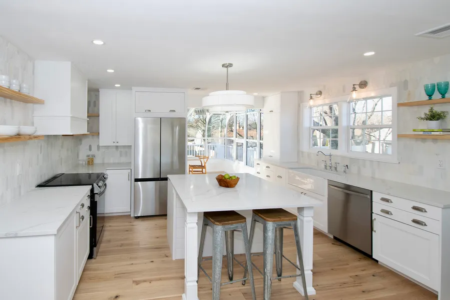 READY TO MOVE IN! Be close to town, beaches, library, Fenwick Golf, & Saybrook Pt. This 2023-24 complete remodel is effectively a new home w/engineered hardwood flrs thru-out. It's ready to move in. This home boasts new HVAC heating/cooling systems. It offers security knowing there's a new 50-gallon hot water heater & new Samsung appliances(w/warranty). The main floor incorporates the epitome of open living as kitchen, living room (w/gas fireplace) & dine-in sunroom blend to create the heart of the home. Here you'll create memories. A large quartz island & countertops, marble back splash & atrium dining area make entertaining easy. The 1st fl. PBR suite has 2 closets & a bath w/twin sinks & a stunning tub/shower combination. Two more bedrooms & a full bath finish the 1st floor. The remodeled heated lower level offers a family-room w/walkout French doors leading to a fenced in backyard. A...