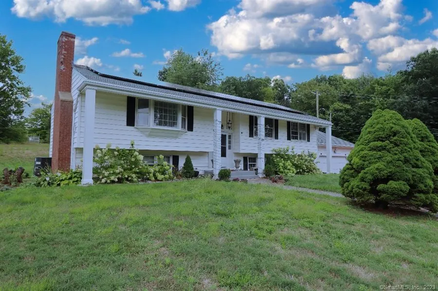 Raised Ranch style home with spacious 1500 sq ft on the upper level and an additional 400 sq ft in the lower level. A 2 car garage attached to the side of the home does not take up space from the basement so there is lots of storage space. Updates include a modern eat in Country kitchen with Stainless Steel appliances, Hardwood floors, recessed lighting and granite counter tops. Formal living room with Fireplace, recessed lighting, newer floors. Bright updated sun room with Ceiling fan off the back of the home. 3 bedrooms upstairs with a full bath and walk in closet in the primary bedroom. The house is cooled with a central air conditioning system and heated with baseboard heat. A lower level finished room has a half bath and 2nd fireplace. The laundry is located in a large unfinished area of the basement great for storage with access to the garage. Deck off the back of the house for entertaining. Located next to Portland High School / Middle School and is right down the street from Valley View School. Semi Circular and straight Driveway makes parking and maneuvering cars easy.