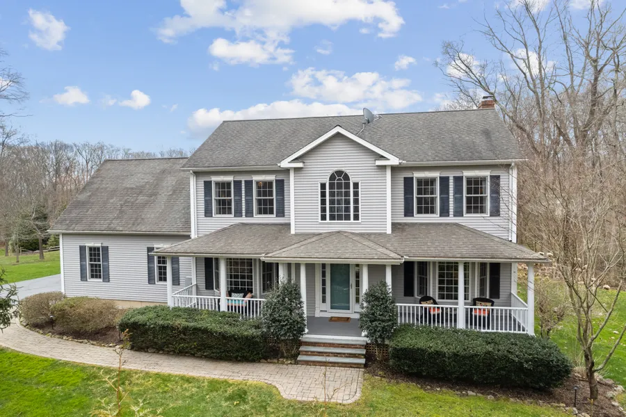 Nestled privately down an extended driveway, 23 R Egypt Lane is a distinguished Colonial retreat that showcases the epitome of elegance and sophisticated living. This impeccable abode is a testament to pristine maintenance and interior design, invoking the alluring appeal of a high-end home magazine. You're invited into an expansive atmosphere where high ceilings and commodious rooms form an inviting open floor plan. The main level is designed for both grand entertaining and cozy everyday living; it features a formal living room and dining area, along with an eat-in kitchen boasting a functional center island, all seamlessly connecting to the family room anchored by a stone-detailed fireplace. Elegant hardwood floors run throughout and are paired with towering ceilings over 9 feet, which together with abundant windows, bathe the space in cheerful natural light. Ascend to the upper level ...