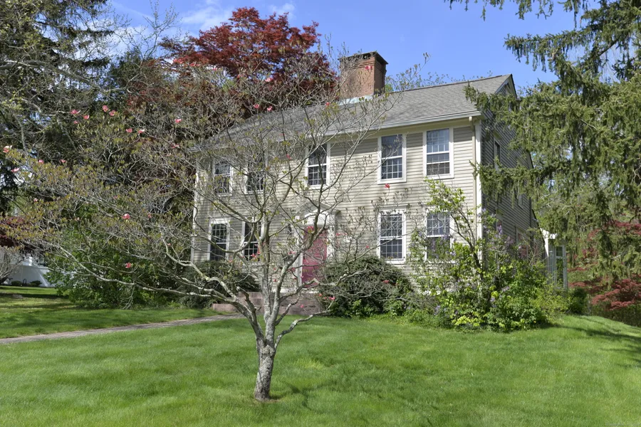 A true gem in Cromwell! The beautiful, historic Cornwell Dowd Jr. house is a late Colonial style house built in the Federal period in 1807. This center chimney home sits on prime, acre plus, park-like lot near town center, across from Pierson Park and walking distance to the CT River and Riverport Park where you can enjoy summer concerts and other activities and just a short drive to Middletown and Hartford. Extensively restored and expanded by the current owner the home retains many historic, period features including wainscot paneling with chair rail crowns, fireplace mantles, six panel doors, exposed corner beams and period light fixtures. Clapboard siding was added and a new, ornately adorned front portico. Other features include an unadorned triple run staircase, and fireplace with two beehive ovens in keeping room. A spacious, fireplaced family room addition with expansive windows and vaulted ceiling was added on to the rear of the home and functions as a Great room with a pass-through to the kitchen. There are two formal parlors with fireplaces, hardwood floors are throughout the main house and rustic tile floors are in the family room addition and a small birthing room or office is located between the family room and dining room. Each floor has a full bath. Recent improvements include new roof and exterior painting 2023. A great historic home on a terrific lot in historic Cromwell!