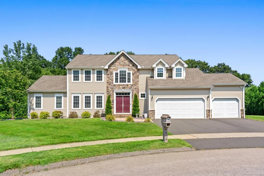 Stunning custom built 5 Bedroom / 5 Bath colonial situated on LEVEL, PRIVATE 1.26 acres in cul-de-Sac location. The pristine exterior grounds & neighborhood setting , lined sidewalks, yet private yard makes this home nothing short of impressive and will check every single box. DUAL in-law options and guest suites located on main level and finished lower level both ideal and has everything you need. First floor of this home features first floor guest suite or secondary primary suite fully equipped with full bath, open floor plan, spacious family room, hardwood flooring and oversized 3 car garage. A primary suite with a massive walk-in closet, coffered ceiling, full bath with dual vanities and three additional large bedrooms, bath and laundry can all be found on the second floor. The finished basement is an amazing design and is an ideal space for rec room, play room, guest or in-law options The lower level is fully finished with a full wet bar and kitchenette, bath and private study. Daylight windows in lower level and higher foundation walls was thoughtfully designed making this space feel like another house ! Public utilities, irrigation , generator hookup, storage shed, rear composite decking, multi zone heating, high efficiency mechanicals, and plenty of storage make this home EVERYTHING on your list! Shopping, restaurants, i91 , route 9 all within minutes !
