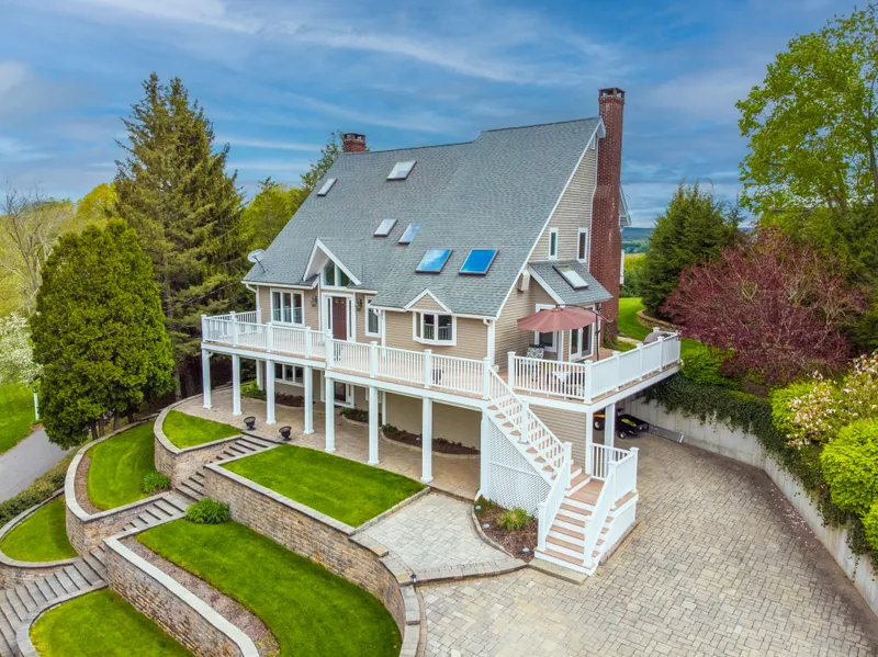 Experience the stunning views of the Connecticut River, Lyme's hills, and the expansive valley from your heated Gunite in-ground swimming pool. The beautifully manicured grounds reflect years of dedicated care. This home showcases exceptional quality, featuring customized designs and meticulous details throughout, including custom moldings and cabinetry in the kitchen, bathrooms, and closets. Filled with natural light and facing Northeast, the home offers enchanting sunrise views. The primary suite boasts a stone gas fireplace and access to a private deck, perfect for peaceful mornings and relaxing evenings. The chef's kitchen is equipped with high-end appliances, including Sub Zero, Bosch, Viking, and Wolf, and features a warming drawer, granite countertops, tumbled marble backsplash, and a wine cooler. An inviting newly renovated space adjacent to the kitchen enhances the home's charm. The versatile third floor can serve as a guest suite with a full bath and chandelier-lit walk-in closet, a game room, or a private retreat. Enjoy outdoor dining on the expansive wraparound Trex deck, the stone paver patio, or the gazebo, all while taking in incredible views. The lower level, originally an entertainment area, has been transformed into the owner's licensed hair salon but can easily be adapted to suit the new owner's preferences. The house is a short stroll to town, where you can enjoy Chester's fine restaurants, farmers' market and many local community activities.