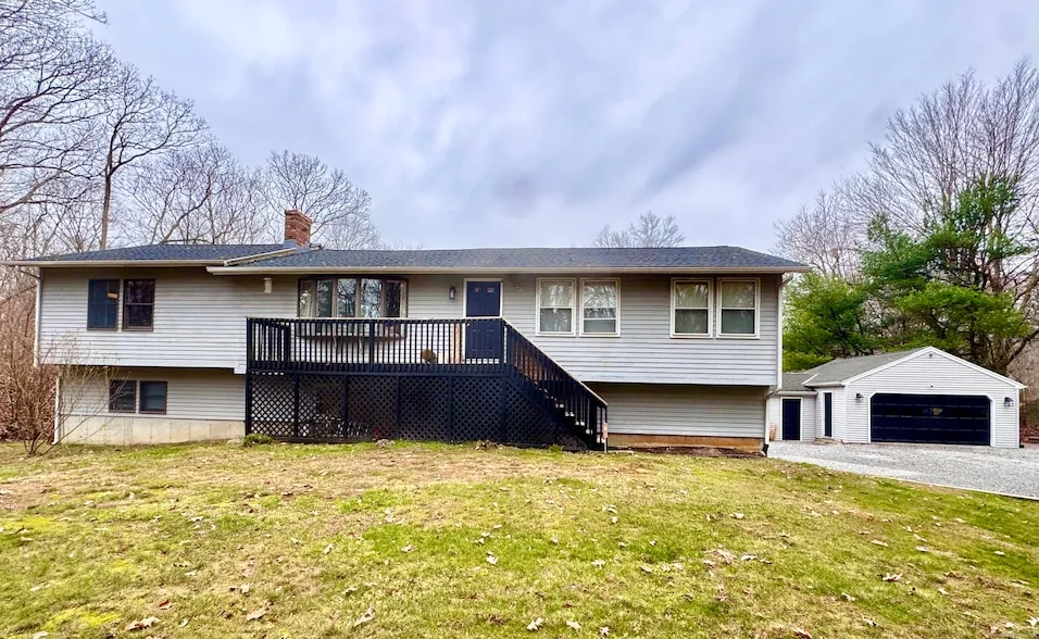 Tucked back on 3.17 private acres, this home offers the perfect blend of quiet country living with quick, easy access into both Clinton and Madison. This spacious raised ranch lives large, with hardwood floors throughout and an inviting open floor plan that centers around a beautiful kitchen featuring GE Profile appliances, granite countertops, a great center island, and vaulted ceilings that flow seamlessly into the warm, sun-filled living room. The woodstove keeps the home cozy all winter and helps keep heating costs low. A big dining room provides plenty of room to host the holidays, and the generously sized primary bedroom gives you the space you've been looking for. The upstairs bath is nicely finished with a pedestal sink and classic details. The lower level expands your living options with an additional bedroom, a second woodstove, and a possible in-law setup with its own walk-out...
