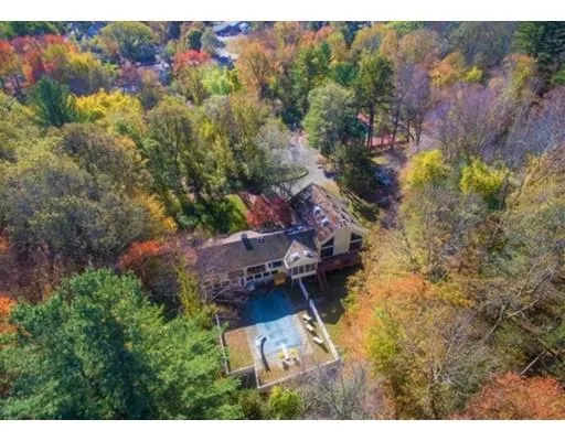 Welcome to this 13-room contemporary ranch sited on 3 secluded acres bordered by conservation land yet still in the heart of Holliston near schools, parks, Lake Winthrop & rail trail. Offering 5000+ sq ft of flexible space, this home wows w/walls of windows & serene views from every light-filled room. An inviting foyer opens to the expansive 29' x 34' Great Room w/beamed ceiling, skylights & floor-to-ceiling brick fireplace plus spiral staircase to loft w/Juliet balcony. Off the Great Room is a private master suite w/closets & luxurious bath. Formal dining room, spacious eat-in kitchen, cozy den, 2 add'l bedrooms & updated bath. Screened porch & deck provide relaxing space to unwind. LL has theatre room w/projector, foyer to pool & sauna w/bath, laundry, family rm w/frpl & office/guest rm. Enjoy grounds built for fun w/16' x 36' in-ground pool w/slide & diving board, patio & your own pri...
