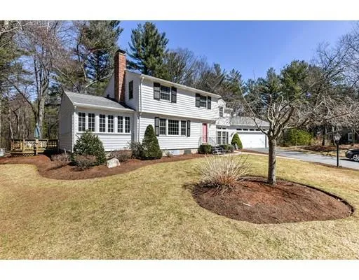 Terrific 3 bed 1.5 bath center entrance colonial located on a beautiful 1.16 acre lot close to Chelmsford Center. This home has 3 BRs and 1.5 baths w/the possibility of a larger bedroom on the 2nd floor that was never completed by the current owner. There are hardwood floors throughout. A large open family room provides amazing light w/views to the very private back yard & direct access to the 2 car attached garage. The kitchen has been updated w/ granite counter tops, breakfast bar, stainless steel refrigerator & dishwasher. Enjoy the sunny fire placed LR that flows into a formal DR w/bay window. Enjoy a wonderful 3 season porch adjacent to the DR during beautiful weather that leads directly to a lovely deck. Upstairs there are 3 nice bedrooms and a full bath. Not to be missed is the partially finished lower level w/separate gas FP that could be ideal as a playroom. Owned by the same family for many years, this is a home that has been lovingly cared for.