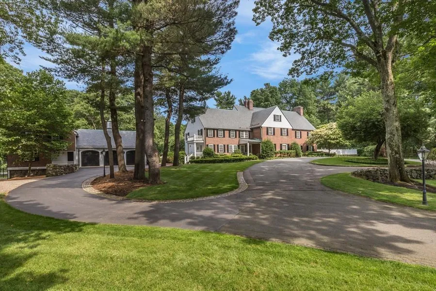 Rare offering of a distinctive Brick Georgian estate sited on 2.6 acres of exquisitely landscaped grounds abutting conservation land. This stately residence exudes elegance and sophistication with a combination of privacy and convenience. Appointed with unparalleled detail, the home has been impeccably decorated on 4 levels. The grand entry foyer with spiral staircase welcomes you to the first floor which features a spectacular formal living room with French doors opening to a covered loggia, grand dining room, handsome fireplaced library with beamed ceiling and a professional grade kitchen featuring an oversized island, informal eating area and family room. The second and third floors include a magnificent master suite with over-sized walk in closet, three en-suite bedrooms and two additional bedrooms and full bath. Great lower level with fireplaced great room and exercise room. The pro...