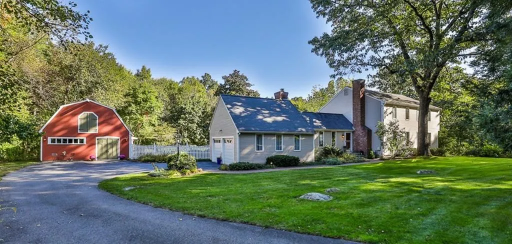 Fantastic private, estate-like setting for this beautifully appointed, warm & inviting Colonial home featuring Reproduction touches: brick entry, large brick fireplaces, lovely wall mural of Acton's Historic Buildings in dining room, detailed paneling, etc. Attention has been given to every detail with tasteful updates throughout. A few of the fabulous features are hdwd flrs on the 1st & 2nd flrs, kitchen with cherry & maple cabinetry, SS appliances, quartz countertops & updated baths. This special property highlighted with delightful gardens, lawns & woodlands (amazing views from every window!) abuts Nagog Conservation land & is located on a private way w/ 4 other homes. Along w/ the beautiful home, the property also boasts a two-story barn (1st flr finished w/ Anderson windows & wood flrs, 2nd story is walk-up storage), an in-ground gunite pool w/ spa & pool house & Collector's garage that holds 14 +/- cars or whatever you collect/store (2065 sq ft). Truly an exceptional offering!