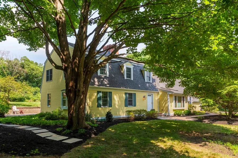 A quiet residential road provides the perfect setting for this completely charming gambrel colonial. Sited on a bucolic 1+ acre lot with brick walkways and new landscaping. Interior highlights are a living room with fireplace and 8' box window for enjoying lovely sunsets, cathedral ceiling family room with wide views to the beautiful rear lawn, private first floor office/library with 8' box window, dining room with Andersen slider to an inviting patio, and convenient breakfast area. The second floor offers a master bedroom with an updated bath, three family bedrooms, a family bath, and laundry area. Walk-in access to an ample storage area over the garage. The partially finished basement is great space for various activities. Nearby is the wonderful Bruce Freeman Rail Trail. A Buderus boiler has been recently installed and the exterior of the house has just been painted. Andersen Low-E windows. A new 4-bedroom septic system will be completed prior to closing.