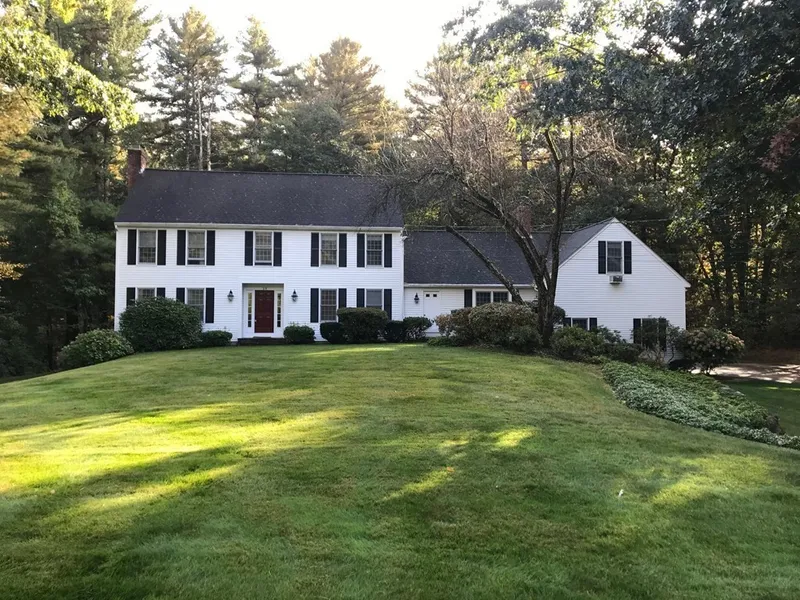 Prominently situated down a long drive (2018 redone) sits this Center Entrance Colonial with a 3 Car Garage & an Enormous Yard perfect for ball games & family get-togethers. With over 4000 sq ft this Home features a large Kitchen that flows to a Cathedral Ceiling Family Room with a Soaring Fireplace & Wet Bar. A Front to back Living Room with Large Picture Window, Formal Dining Room, 1st-Floor Office & 2 Powder Rooms complete the 1st Floor. Don't miss the Two Room Private Suite over the Garage that provides the perfect space for Guests or a Large Home Office. The 2nd floor features a Master Bedroom Suite, three additional Bedrooms (2 with walk-in closets) & a Renovated Full Bath. The Sunny Walk-Out Lower Level with Sprawling Rec Room has Large Windows & a Slider to the Rear Yard. Conveniently located on a Dead End Street abutting Conservation Land not far from Shops & Restaurants. Make this home your own! One Year American Home Sheild Home Warranty Included! Ask for Details!