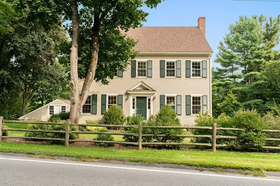 This beautiful & light-filled 4BR, 2.5BA colonial with pristine hardwood floors is on over 2 acres of pastoral land. The exterior has superb curb appeal with clapboard siding, classic shutters, double-hung windows, French doors & gorgeous private farmer's porch overlooking the serene backyard. The 1st floor boasts high ceilings, spacious living and dining rooms, & office with pocket doors. The open, bright kitchen offers a center island, quartz countertops, stainless steel appliances, a pantry, ample cabinet space and access to lovely back porch. Upstairs, bedrooms feature hardwood floors & generous closets with built-ins. The large walk-up attic and walk-out basement have great expansion potential. A detached, 4-car garage with storage. Professional landscaping, mature trees, open lawn, gorgeous granite steps, stone walls, and brick walkways complete this move-in ready house. Sherborn's...