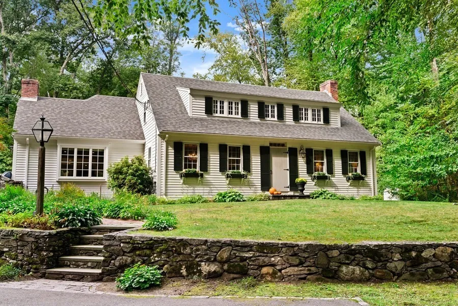 This classic New England Cape is brimming with charm & character, inside & out. The cheery breakfast room has exposed beams, built-ins, a fireplace with wood stove & French doors leading to the family room. The sun-filled family room features a fireplace, lovely built-ins, stunning floor to ceiling windows overlooking the picturesque backyard & French doors outside. The kitchen has stainless steel appliances, a 5 burner gas stove & generous storage. Finishing the 1st floor are the beautiful dining room, spacious living room with built-ins and a fireplace & an elegant 1/2 bath. 2nd floor is comprised of the owner's suite with master bath, 2 walk-in closets, 2 additional large bedrooms, a full bathroom & bright laundry room. An automatic generator, two car detached garage with storage above, multi-tiered patios, stone walls, exquisite flower gardens, large fenced in yard & privacy galore complete this stunning property. Idyllic Farm Pond, top schools & miles of trails all in Sherborn.