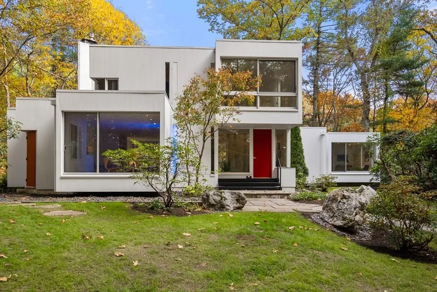 Rarely available mid century modern home on coveted cul de sac close to Lincoln Station and Lincoln school campus. The "white house in the woods" is a gem created by former owner in collaboration with ARC architects, Joseph Maybank and Arthur Cohen. Positioned perfectly on the lot natural light streams through the central atrium's skylight and floor to ceiling windows throughout the home. Incredible high end renovations of kitchen and 3 full baths designed to complement the original details of this special home. Living spaces all with views of woodlands include a living room with access to the bluestone patio, sitting room with gas fireplace and new quartz surround and library with built in bookcases. Renovated cook's kitchen boasts new cabinets, professional stainless steel appliances & quartz countertops. First floor bedroom suite featuring office, stylish bathroom & laundry alcove off...