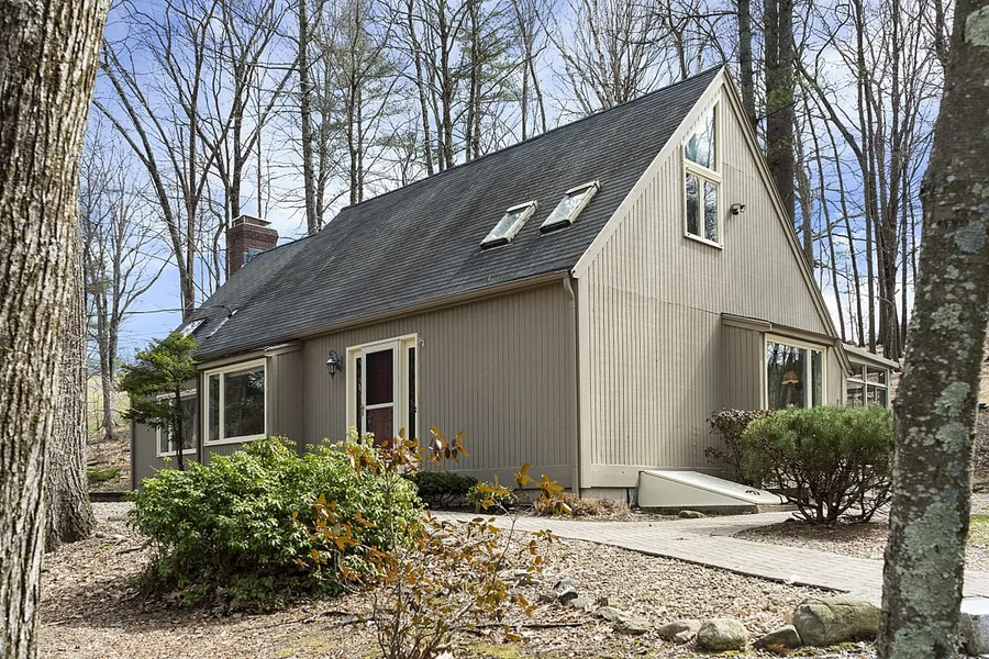 Welcome to this Charming Cape with private lot. Walk into the open living room then pass a cozy family room with fireplace that can be closed off with French doors. The Kitchen provides an updated open and airy space and looks over the eat in dining area that is adjacent to a large glass picture window with views to back yard and apple orchards in the background. There is a 3 season porch that allows access to the back and side yard. A TV room off the kitchen rounds out this great 1st floor living space. The home has a 1st floor master bedroom that is adjacent to the 1st floor full bath. The second floor offers a loft with a bedroom and den on either side with a 2nd full bath. Downstairs has a finished room great for an office and space for a playroom. There is an abundance of unfinished space for storage. A great home offering lots of space & options for remote work.