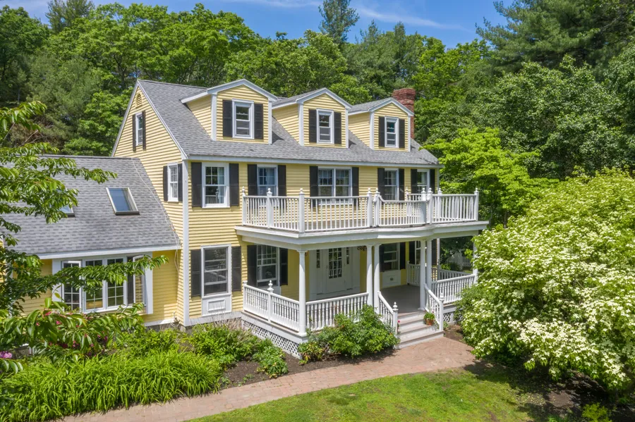 Custom-built Colonial featuring grand front porch with Georgian-style detail surrounded by 3 private acres with mature gardens, inground pool, and side yard with swing set and level play area. Abundant natural light permeates throughout the spacious, cherry kitchen with Sub-Zero refrigerator and adjacent family room with cathedral ceiling, birch flooring, and fireplace. Custom cherry flooring in home office with fireplace and in the formal living/dining rooms offer lifestyle flexibility. Upstairs the front-to-back primary suite includes a spacious walk-in closet and full bath with jacuzzi tub. Three additional bedrooms with ample closet space and shared bath. The finished third level offers three sunny rooms. A newly remodeled, finished basement includes a spacious recreation room. Entertain this summer on the refinished 27x14 deck and relax in the refreshing inground gunite pool. Located less than 2-miles from the award-winning Acton schools, shops/restaurants, MBTA Train & Rt 2.