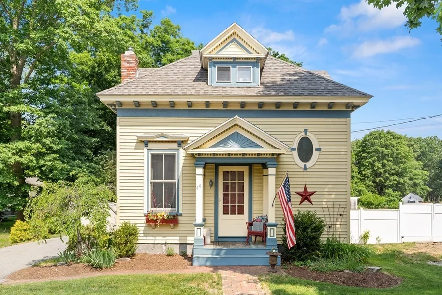 MOST CHARMING turn of the century home awaits the buyer looking for something SPECIAL! Tremendous curb appeal with detailed trim work, front porch welcomes into inviting living room with hwd floors,gas fpl, period wainscoting and nearly ten ft ceilings! Kitchen has been thoughtfully renovated to retain charm of that era with modern amenities. Follow to large multi-purpose room off the back, currently a dining room and office, with original wide plank floors, built-ins, paneled walls, surrounded on three sides with windows overlooking serene backyard. A full bath completes first floor. A turned staircase highlighted by lovely oval window leads upstairs to two bedrooms. The master bedroom is brightened by a SPECTACULAR period skylight and has renovated ensuite, full bath and large, walk in closet. Fenced in, backyard oasis with patio and garden. Well loved home on pretty lot in village setting is perfect opportunity to own a piece of Westford's History. Offers due Mon 6/14 at noon.
