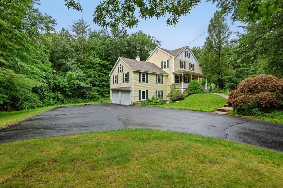 Beautifully maintained colonial home with New England charm, lovely private setting and great curb appeal. Sun drenched Farmers Porch leads to nicely sized foyer, living room/home office with french doors, oversized EIK/dining room tastefully updated to include center island and family room with cathedral ceiling and pellet stove ALL with hardwood flooring! Nicely sized half bath competes first floor. Second floor has 2 large bedrooms, master bedroom with walk in closet and family bath with 2 vanities, built in cabinetry and tile flooring. Seller has finished the above grade lower level to include lovely 3rd bedroom with full windows, bathroom, and additional bonus room. Exterior green space shines, enjoy your private green space including fresh mint garden, deck in the rear and porch on the front, exceptional parking and 2 car garage. Location is private yet close proximity to Nashua, 1...