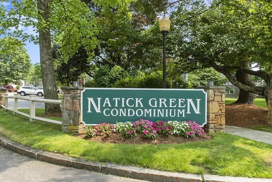 8/1 OPEN HOUSE CANCELLED-OFFER ACCEPTED. Welcome to the Natick Green Condominium complex. This is a great 1st floor unit and it is situated in a wonderful private setting within the complex. This rear facing CORNER unit has a private patio space overlooking greenery. Within the past few years the unit has an updated kitchen w/ QUARTZ counters, STAINLESS appliances and soft-closing wood cabinets. The kitchen opens to a small dining area that opens to a nice living room space w/ slider to the outdoors. There are 2 good sized bedrooms and 1 updated full bathroom w/ laundry hook-ups. The condo has carpeted bedrooms, newer, wide plank laminate flooring in the dining, living and kitchen rooms and a tiled bathroom. Other amenities include central heat & cooling, a private storage locker at the patio, 2 parking spaces, use of the heated swimming pool, tennis courts, picnic/grill areas and more! The complex is across the street from the West Natick Commuter Rail station on 135.