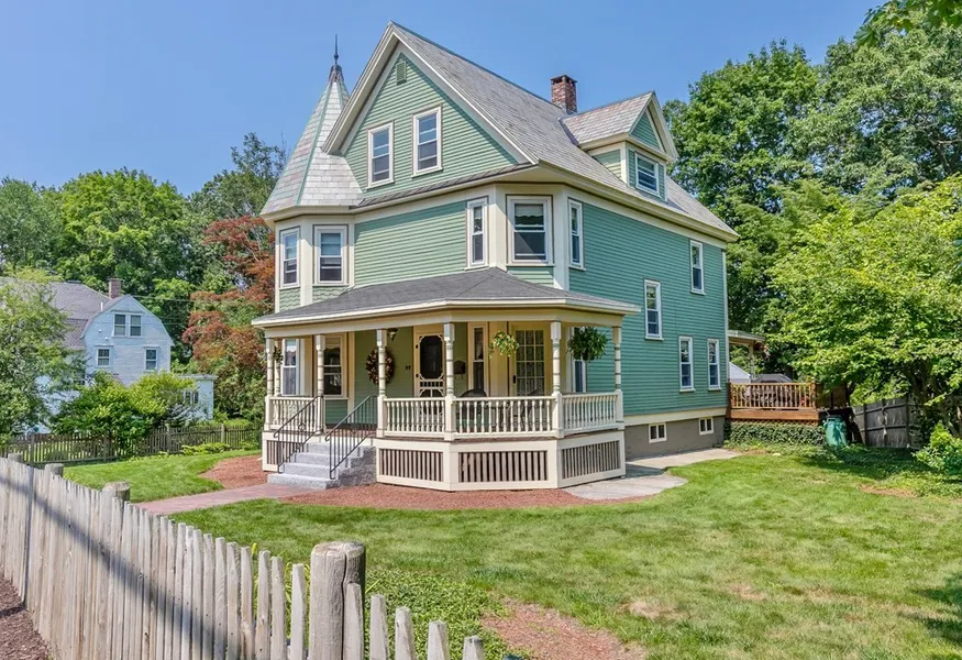 This handsome Queen Anne Victorian, known as the historic George & Mabel Turner House sited on a private landscaped lot with fenced in yard & mature trees. The wraparound veranda with turned posts & spindles, hexagonal two story tower, gables & slate roof add to the charm. The interior has spacious rooms with 9' ceilings on the first floor, beautiful hardwood flooring throughout, pocket doors with leaded glass, period lighting, several bay windows, alcove spaces, marble fireplace with carved oak mantel surround, crown moldings, open wood staircase to the third floor add to the character of the house plus formal living & dining rooms, first floor office, five bedrooms, first & second floor baths, updated kitchen, 200 amp electrical service, walk out basement, double decks leading to the back yard & finished, heated 2 car garage. Minutes to quaint downtown Ayer with T-station, restaurants,...