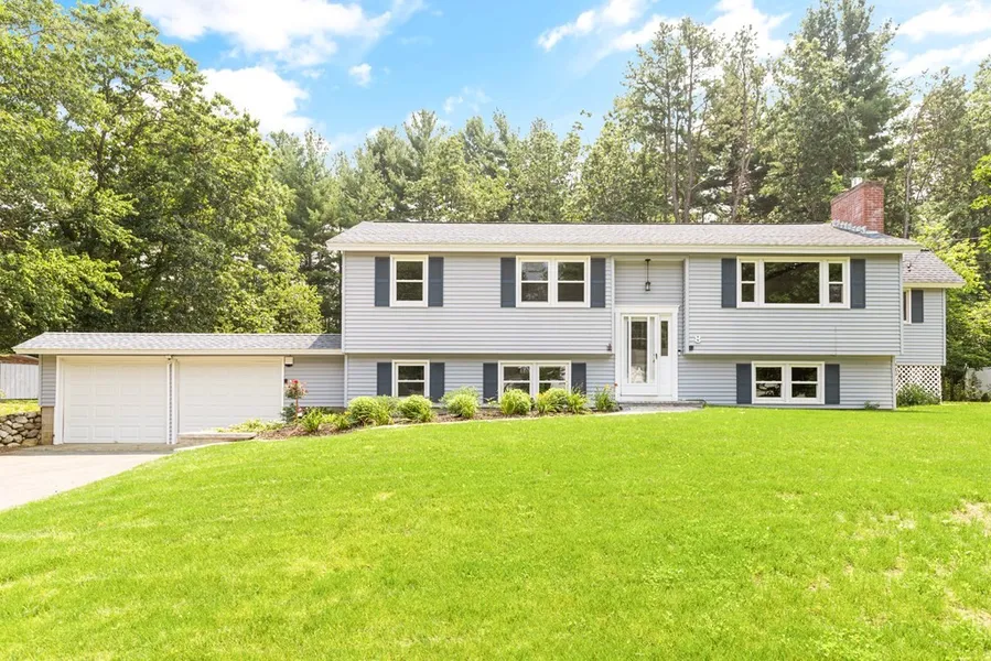 Expansive Split Entry home in West Chelmsford cul de sac neighborhood offers terrific opportunity for in-law, extended family potential with separate living spaces. Upper level features charming beamed living room with gas fireplace and large picture window flowing into dining room and family room and into REMODELED, NEW kitchen with granite counters and s/s appliances and bright breakfast area with sliders to deck. Three bedrooms and full bath complete first level. Hardwood floors recently refinished and shining! Lower level features additional bedroom with ensuite bath, another remodeled, new kitchen, large living room area with beautiful, stone fireplace, a half bath, cedar closet and separate entry access from garage. TWO SEPARATE Laundry areas. Backyard is serene oasis with patio and fire pit and access to waterway connecting StonyBrook river to Freeman Lake. Wonderful opportunity f...