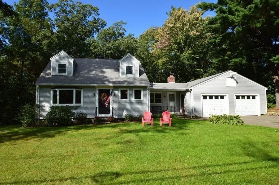 Don't miss out on this charming west side Cape with four bedrooms, two car attached garage situated on a beautiful acre+ lot. Enter from the farmers porch into the spacious fireplaced dining room/ family room with coiffured ceiling and sliders off the back onto the covered deck that overlooks the amazing private level lot. Updated white kitchen with tile back splash, stainless appliances plus a tastefully renovated full bath. You'll love the inviting living room with its big bow window overlooking the lovely front yard. Two bedrooms on the first floor, one could be a home office. Two bedrooms on the second floor, both with lots of storage. Hardwood flooring in most of the home. Full drive-in storage bay around back perfect for lawnmower, outdoor furniture etc. Full walk out basement ideal for future finishing. Put your own touches here and there and you'll find your own forever paradise on this winding country road that is also a commuters dream...