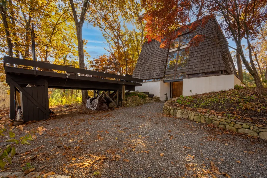 A rare opportunity to own this one-of-a kind Mid-Century Modern home designed by local Lincoln architect and longtime resident, Crawley Cooper. Created for his own family and privately sited at the end of a cul-de-sac on 2.8 magical acres of land, this whimsical home is well connected to its environment. Multiple patios, a custom built firepit, a spacious roof deck above the carport, and huge windows all take advantage of the spectacular surroundings. The unique open floor plan is circular in nature, each first floor living space flowing seamlessly into the next room. Bonus adjacent spaces, perfect for offices or play, enhance the bedrooms. Constructed with steel and cement blocks, it offers an architecturally distinct Space Truss Design. Ideally located in the center of Town close to train, shopping and schools, abutting conservation land and trails. Renovate as designed and/or consider...