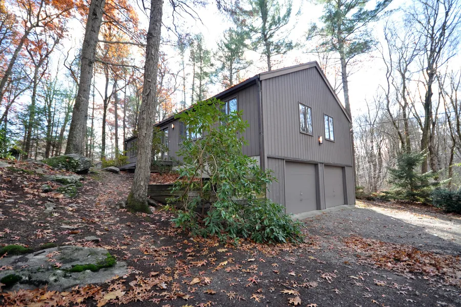 This is a very special property indeed ! Welcome to this custom Acorn contemporary ranch style home tucked away on a very private 1.7 acres yet located in the popular pool neighborhood of Patriots Hill .There are tranquil wooded views and sunshine galore from every dramatic window plus sliders off both the LR and MBR leading to the secluded oversized mahogany deck. Enjoy an evening hot tub or your morning coffee in total privacy. Floor to ceiling handsome fireplace in the LR and a wall of brick in the kitchen. Three bedrooms plus 2 full baths complete the main floor. The unfinished LL has walk out sliders plus a fireplace & loads of open space ready to be finished. The 2 car garage leads into the LL and there is even a large fenced in area out back for your pets. This home could be a wonderful condo alternative as well as expansion possibilities for a family in the future. Although it ne...