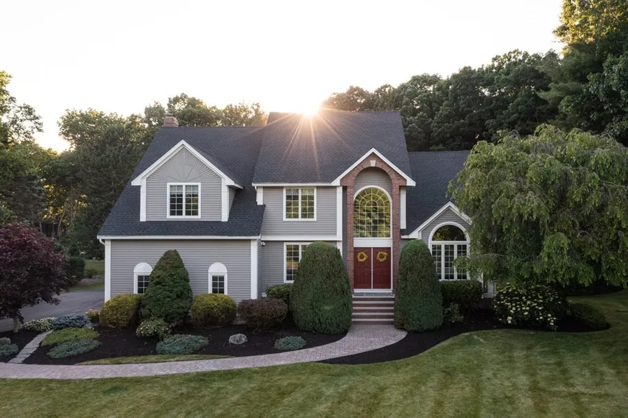 Fox Run Estates elegantly maintained contemporary colonial with a gorgeous foyer. First you will notice the outstanding curb appeal, and then gorgeous foyer upon entry. Cathedral ceilings in the foyer, living room and master bath. Dining room has mahogany inlaid hardwood floors with french doors and a rounded archway to the kitchen. Open floor plan connects the family room and kitchen. Master bedroom features an oversize master bath with cathedral ceilings, jacuzzi, shower, double vanity and a custom walk in closet. Basement features a game room and an exercise room. Third floor has a sitting room and a home office. Professionally landscaped flat lot with a private wooded back yard and a large composite deck. Landscape lighting has great nighttime curb appeal too. Elegant and functional all in one package! Come see us.