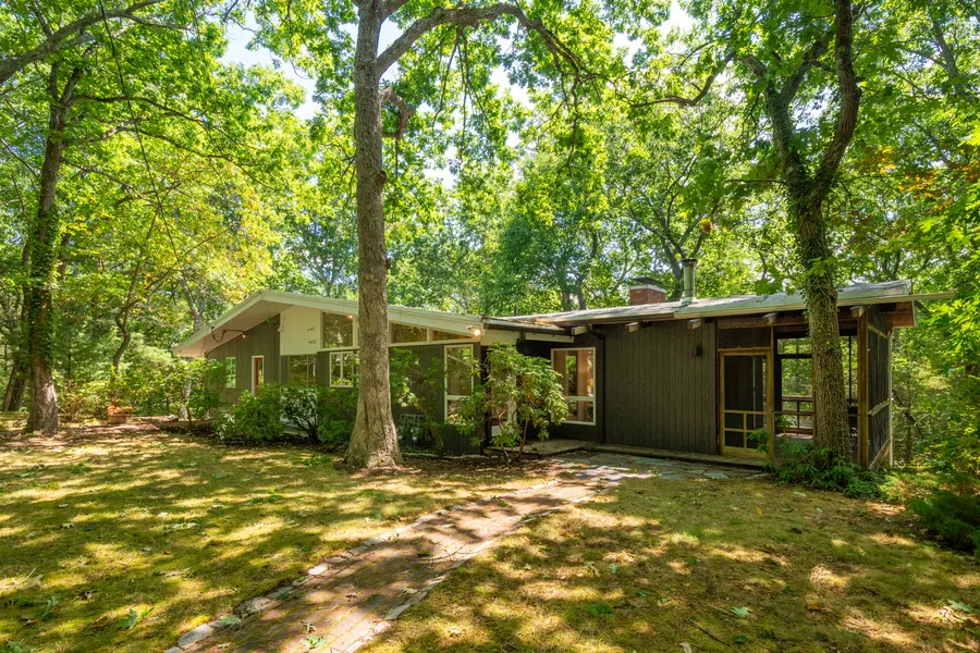 Location! Location! Perched above Valley Pond with current seasonal water views, this Classic Mid-Century Modern home was designed by architect Arthur Brooks, one of the original architectural collaborators in the Brown's Wood Community Project. The original 4-bedroom home was designed with an open floor plan, featuring soaring cathedral ceilings and walls of glass that embrace the surrounding woods and pond. However, in 1986 the home was divided to create an ample one-bedroom accessory apartment, suitable for in-laws or rental. At that time decks, a screen porch and a detached two-car garage were added. This unique property is offered for sale for the first time since its original construction in 1956. Maintain the home "as-is" or restore it to an integrated layout offering single floor living and potential to expand pond views. Ideal commuting and recreation location with deeded member...