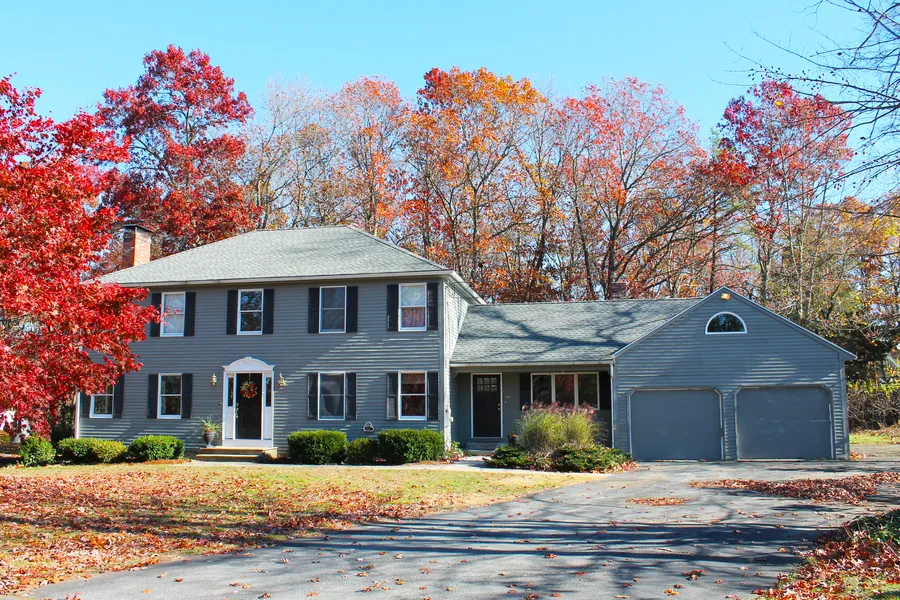 A fantastic opportunity to own this conveniently located, well maintained, spacious Hip Roof Colonial sited back from the road, on over an acre land. The first floor offers a grand foyer, formal living room with fireplace, formal dining room, enormous eat in kitchen with new appliances and access to the deck, half bath and laundry room. A welcoming family room with built in cabinetry, fireplace and sliders that lead to the rear patio completes the first floor. The second floor offers a large primary suite with a full bath and walk in closet, as well as 3 generous sized bedrooms and a full bath. There is a 2 car attached garage and ample storage in the full, unfinished, walk out basement. This wonderful home is excellent for entertaining and close to shopping, highways and conservation land.