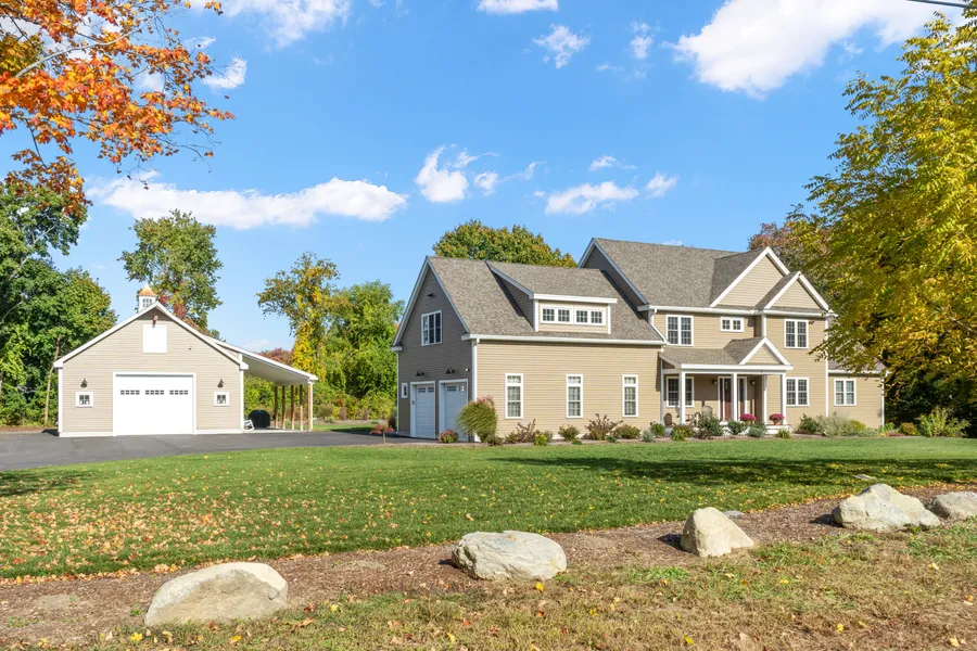 Privately nestled at the end of a quiet street, this impressive colonial and separate barn have been custom designed and lovingly maintained by the present owners. The oversized driveway leads you into the lovely main floor featuring separate dining room, cozy fireplaced family room and a beautifully appointed kitchen with eat-in area overlooking secluded backyard with huge patio area. The primary bedroom is also on the main floor with lovely ensuite bathroom with steam shower. The second level boasts a huge great room, 3 sunny carpeted bedrooms, separate laundry room and another full bathroom. Walk-up attic for more storage. The finished LL is just amazing with another spacious & bright family room, delightful full bathroom, exercise room, study area plus many closets for storage & utilities. Incredible lighting throughout. Lots more space in the detached heated barn with work area & hi...