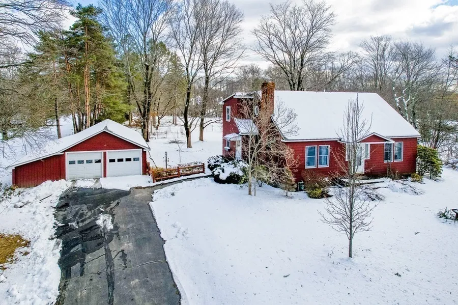 Set on a 3.5 acre lot which is level and mostly cleared... this property is unlike any other! Enjoy the endless possibilities - perhaps horses, inground pool, tennis court, hosting family gatherings...you will have enough land to do all that & more. Step into this large home which offers a versatile layout & hdwd fls thruout most of the 1st level. Lovely, lg livrm w/fp, dining room w/built in hutch & french doors to the cathedral 3 season porch w/an abundance of windows, kitchen with pantry in entry hallway, 2 nicely sized bdrms & full bath.The 2nd level offers possibilities of a private huge primary bdrm suite or a f-b bdrm and bonus room w/ large bthrm. Don't miss the HUGE 2c garage with an additional garage bay accessed from the back. You will never say your don't have enough space for tools & yard toys. Long time owners had horses and loved their home and all their land. Minutes to Rt 495 & Trull Brook golf course. Sold "As-Is