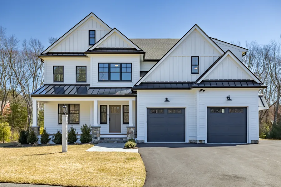 Sun drenched new construction offers a blend of rustic charm and modern glam. The third of four homes built on a cul-de-sac, you?re welcomed onto a fabulous farmers porch, a beautiful acre lot, surrounded by like homes and mature landscaping. An entertainer's dream, inside you're met with a sparkling white gourmet kitchen with high-end Thermador appliances, a sleek butler's pantry, and a walk-in pantry closet that will make you swoon! The kitchen is open to the living room made complete with a gas fireplace and large glass slider that opens to the deck. You?ll also find a desirable 1st floor space with en-suite bath, easily imagined as a home office, guest room, or even a playroom. The second floor offers four spacious bedrooms and another family room, providing plenty of space for everyone. On the third floor, you'll enjoy the flexibility of a nanny/guest suite, or perhaps a teen retreat. The framed lower level is ready for future expansion and customizable to your needs.