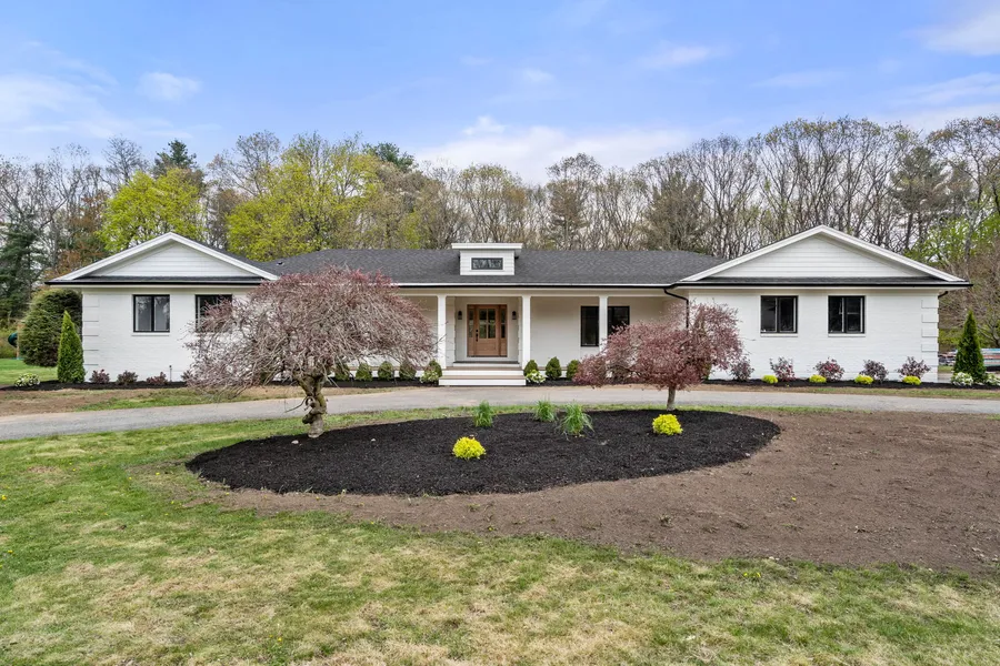 Weston Estate's neighborhood, the wait is over. Contemporary masterpiece! This sprawling residence features 5 bedrooms and 4.5 bathrooms. Custom renovated with every amenity! Enter through an expansive covered mahogany deck through a 2-story foyer and you are greeted with abundant natural light and open space. The airy kitchen features soaring ceilings, designer appliances and custom cabinetry. Gorgeous primary suite with spacious walk-in closet and spa like five-piece marble bath. Three more on-suite guest rooms await you on the main floor. Banquet sized dining room with wainscoting & crown molding. Wide plank white oak floors and custom molding throughout! Walls of glass and double-sided fireplace seamlessly blend the living spaces and invite you out to your spectacular patio which overlooks the in-ground pool & cabana. Expansive lower level is not to be missed with built-in wet bar, full bath and walk-out to pool! Built on a level 1.5+- acres with an impressive circular drive.