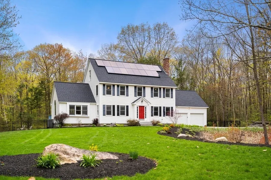 Classic New England Colonial in the popular neighborhood of Mt. Lebanon Woods. This home has an open concept eat-in kitchen that is open to the vaulted ceiling living room with wood stove. Formal dining room, formal living room with wood burning fireplace, powder room and laundry room complete the first floor. Upstairs you'll find the spacious primary suite with walk in closet and 4-piece bathroom. Two other bedrooms share the hall bathroom. Want more space? The third floor is completely finished, providing a fourth bedroom, office, yoga, craft room and the recently finished basement provides additional space with custom acoustic drop ceiling tiles. Save money on utility bills w/ new heat pump, mini splits & solar panels. You're close to conservation land, trails, 20 min to Nashua NH, 10 min to Groton, 25 min to The Point and 7 min to the recently renovated high school.