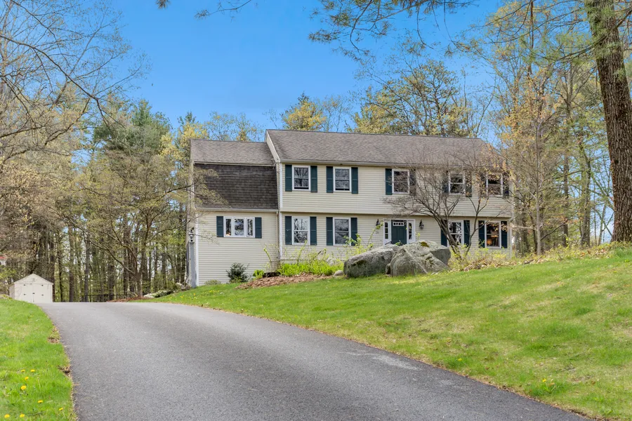 This lovely traditional center entrance colonial welcomes you with an oversized hallway and new front door. Perfect for entertaining, the gracious dining room leads to a tastefully remodeled kitchen with custom cabinets, induction range, quartz counters and a center island for those party platters! The eat in area overlooks the screened porch and leads to the spacious family room with a cozy wood pellet stove and sliders leading to the expanded deck and the pool area. The living room/TV room could double as a home office and much of the first floor has hardwood floors. Head upstairs and you reach the loft/atrium with its cool tiled floor, floor to ceiling windows and soaring ceiling with skylights, then the main bedroom with its new carpet and remodeled ensuite bathroom. There are 3 more good sized bedrooms and a remodeled family bathroom. Much of the interior is freshly painted. Outside the pool area is fenced and surrounded by mature trees and you can charge a Tesla in the garage.