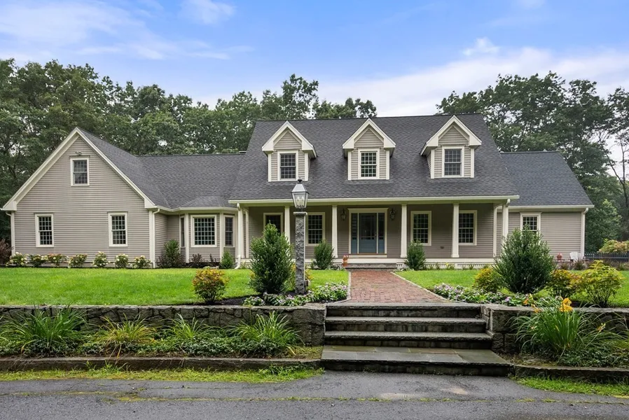The idyllic setting begins on 5+ lush private acres in the sought after Historic Wayside Inn District. This custom built cape has been created and updated with so much character, charm and exquisite taste. The farmers porch captivates you, then into the 4 bed, 3.5 bath cape with new designer kitchen featuring custom cabinetry, marble island and countertops, stainless appliances. Cathedral family room with floor to ceiling stone fireplace. Large mudroom and grand office suite/bedroom with back staircase entrance. Nicely sized dining room, office/study with french door. Option for first floor primary suite or great for in law/guest suite with private full bath. Upstairs to primary suite with full bath, 2 more generously sized bedrooms and full bath. Hardwoods throughout. Walk outside to the stunning yard with gardens, trails and 4 stall barn, paddock and ring with its own entrance to the r...