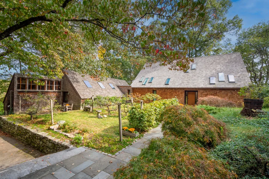 Originally designed and occupied by local architect, Robert Brannen, this signature contemporary home is nestled amid welcoming gardens and surrounding woodlands. Tastefully updated, the first-floor renovation created an open floor plan with a true chef's kitchen including a 6 burner gas stove, Thermador and Sub-zero appliances and expansive quartz center island. Walls of glass introduce the countryside views into the seamless living spaces. The first-floor Primary suite includes a handsomely updated bathroom with spacious shower and dressing area. Wander the lush grounds or enjoy evenings on the welcoming screen porch. A bonus one-bedroom accessory apartment is located above the detached two car garage. In addition, the home, a real gardener’s delight, includes a grow house and separate shed/barn structure with future potential studio possibilities. This special property is ideally loca...