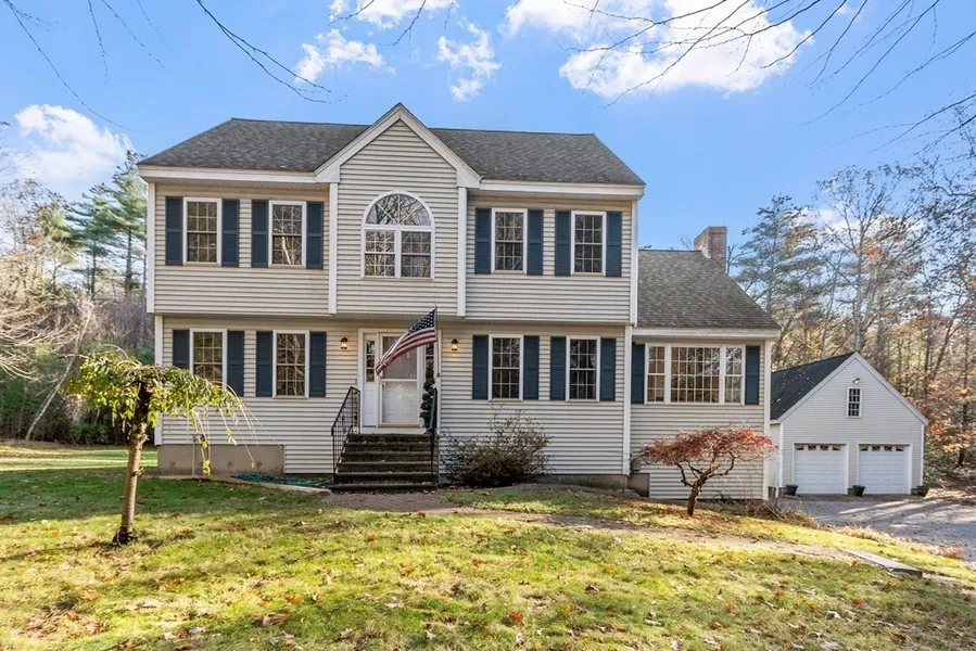 Looking for NATURE and PRIVACY? On end of common drive, 61 wooded acres with established trails for hiking, wildlife watching, snowmobiling or four wheeling. Included in this nature lover's paradise is a 3-bedroom, 2.5 bath colonial with hardwood flooring throughout. Featured are a kitchen with 1/2 bath, laundry, granite counters, stainless appliances with tiled floor that leads you past the slider to the deck and into the front to back fireplaced family room. Formal dining room and a Livingroom/office with French doors complete the front of the home. The 2nd floor offers a large main bedroom with bath, walk -in closet and walk-up attic for storage or expansion. The two remaining bedrooms are serviced by the center hall full bath. In addition to the two car garage under a detached three stall garage/workshop is perfect to store all your outdoor toys. Above the garage is unfinished 30X23 ...