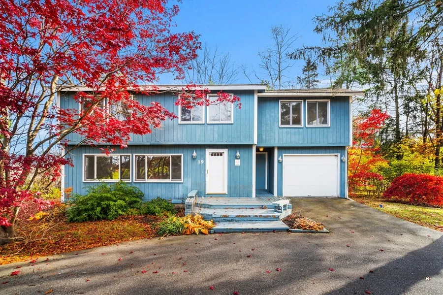 Seller has loved this home since 1972 Great opportunity for buyers looking to enjoy all that Groton has to offer the beautiful surroundings, exceptional location, parking and potential. Home designed to bring the outside in with walls of window across the front and french doors in the rear. Spacious open concept foyer leads to extremely bright oversized living room, kitchen and dining room with french doors to composite deck. Mudroom entrance with direct garage access and half bath completes this floor. Second floor has 3 large bedrooms, HUGE bonus room with built in cabinetry and full bath. Attached garage, circular driveway and peaceful setting make this home special. Enjoy this home in all seasons surrounded by beautiful views, lovely setting and endless potential. 19 Orchard Lane a wonderful place to call home in sought after community and central location, a very special home.