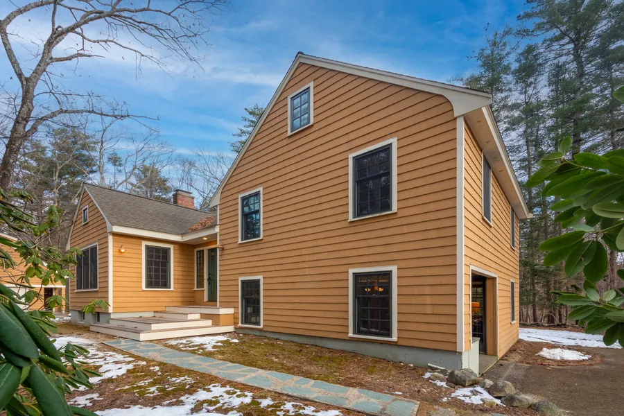Updated and expanded over the years, this home has been enjoyed by generations of a single family who have created new spaces with a contemporary flair, accented by hard wood floors, picture windows and multiple additions that extended the fireplaced living room and family room and added various built-ins as well as a third-floor Primary bedroom with en-suite updated bath. The multiple levels afford privacy and flexible living options including a finished, walk-out lower level ideal for office or family room entertainment while the kitchen has been updated with wooden, Shaker-style Maple cabinets, consistent with the adjacent contemporized spaces. A detached, over-sized, heated two car garage with bonus studio space above offers in-home office or expansion opportunities. Enjoy summer evenings on the back deck overlooking the spacious back yard with serene views of woodlands, gardens a...