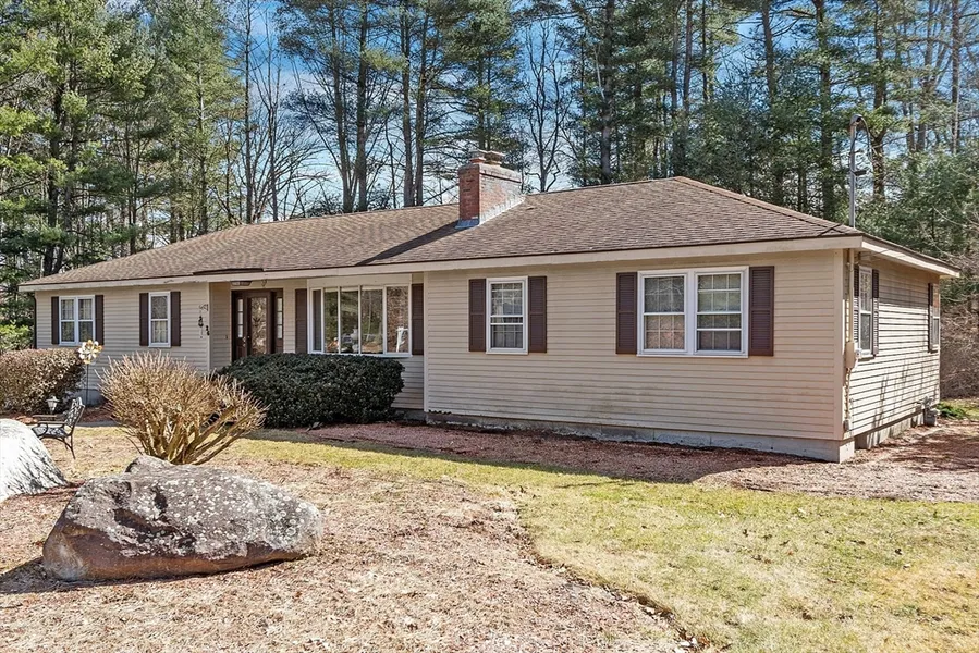 OPEN HOUSE CANCELED SUNDAY 12:30pm-3pm. Offer accepted. This one level, open floor plan flows easily for entertaining with family and friends. The large family room has recessed lighting, sliding door access to the deck and as a bonus, a wet bar area. The updated, eat in kitchen, with beautiful cherry cabinets and quartz countertops will lead you to the inviting and ample 3 season porch overlooking the wooded lot as you enjoy those warm summer days and nights and for those cooler days by the brick front fireplace in the family room. Set on over a beautiful acre lot, located in one of Chelmsford's desirable neighborhoods, conveniently located to routes 3 and 495, schools and the Russell Mill Swim & Tennis Club. Welcome to the neighborhood, Welcome home.