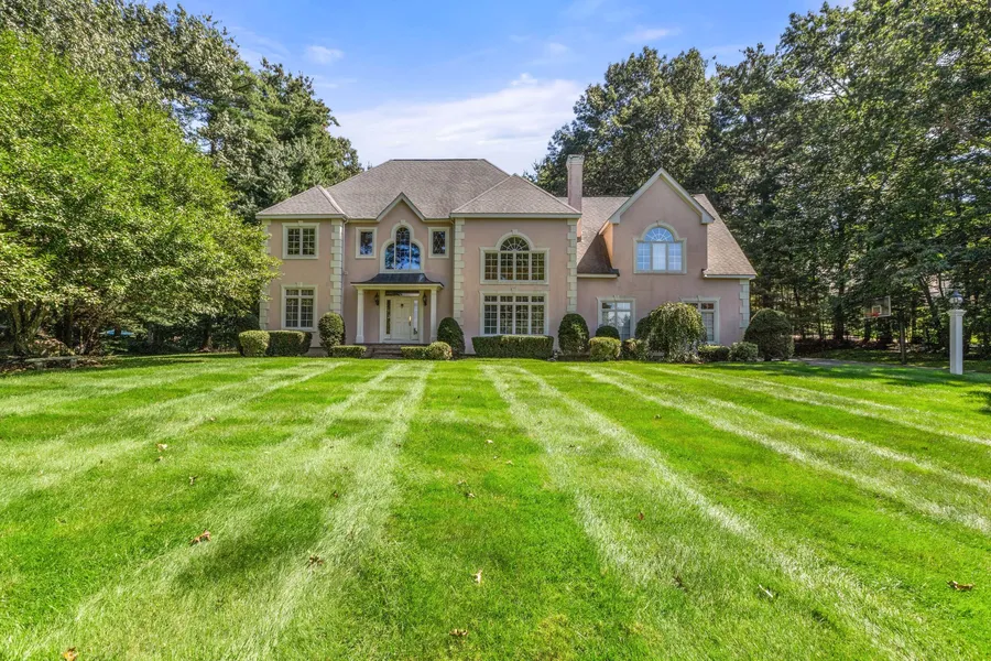 majestically sited and offers breathtaking views of Upton State Forest. The two-story foyer cascading with