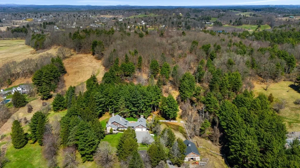 One of a kind home on 6.88 acres on meticulously maintained grounds, this estate like home boasts 6 fireplaces, 4 bedrooms, and 4 baths. With hardwood and tile flooring throughout, the contemporary exterior exudes modern elegance. Enjoy sun filled screen room featuring bluestone flooring, while the heart of the home kitchen has granite countertops, dual ovens, and a wine cooler. Three additional generously sized rooms, each with a fireplace,HW flooring and built in's and custom woodwork grace the first floor alongside a 3/4 bath and inviting front entrance vestibule. Additionally, a family room adjacent to the 3-car garage offers a stunning stone fireplace. Exterior space includes: a two-story post and beam barn, complete with a heated room, water and electric presents endless possibilities for horse enthusiasts, hobbyists, or car aficionados. The expansive green space includes a lovely ...